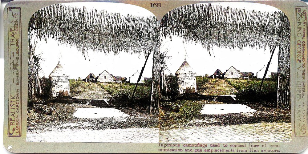 Ingenious camouflage used to conceal lines of communication and gun emplacements from Hun aviators