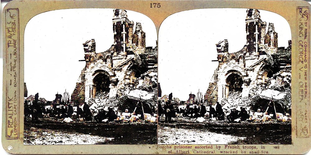Image Id: 427 Contributor: The Jordan/Ference Collection Theatre: Western Front Subject: Battle Aftermath Location: Albert, France Regiment: Unknown Service Arm: Infantry Battle: Unknown Date: Unknown Combatants: French / German Publisher: Realistic Travels Source: British Directory: Set of 600 101-200