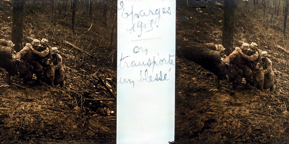 un transporte un blessé, Éparges 1915 - carrying a wounded man, Les Éparges 1915
