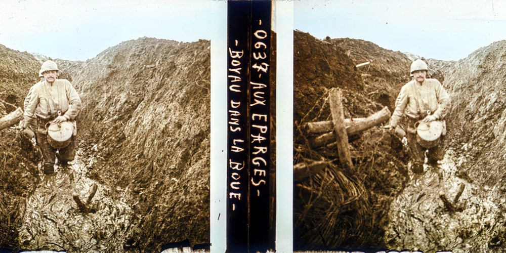 boyau dans la boue aux Éparges - mud-filled communication trench Les Éparges