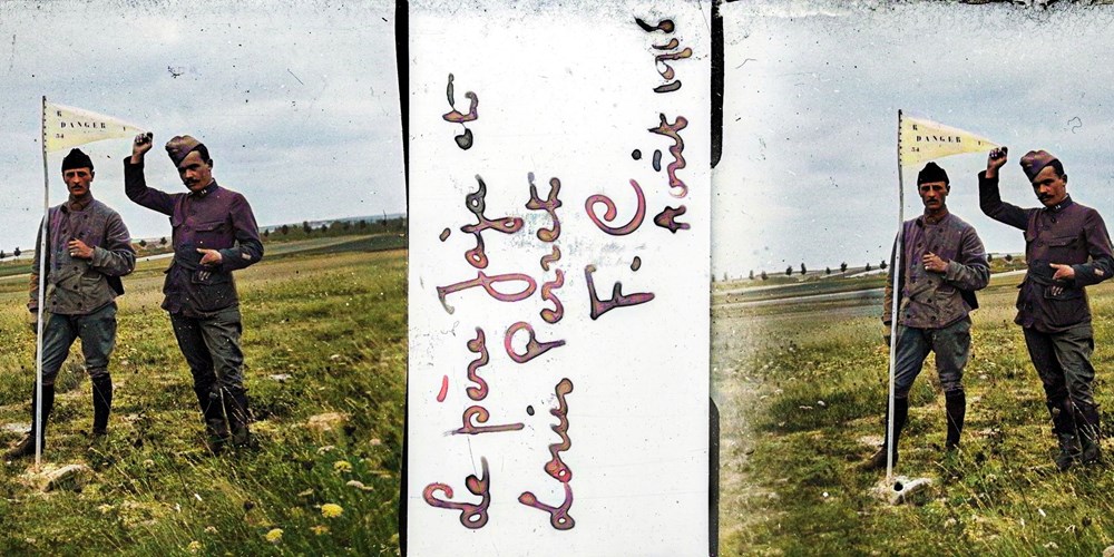 The soldier on the right is wearing the insignia of the 14th Infantry Regiment.Image Id: 4341 Contributor: The Jordan/Ference Collection Theatre: Western Front Subject: Behind the Lines Location: Unknown Regiment: Unknown Service Arm: Unknown Battle: Unknown Date: August 1915 Combatants: French Publisher: Anonymous set, 1914,15,17 Source: French Directory: Anonymous 1914,15,17