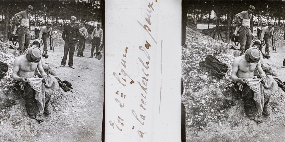 en deuxième ligne, a la recherche les poux - in the reserve line, looking for lice