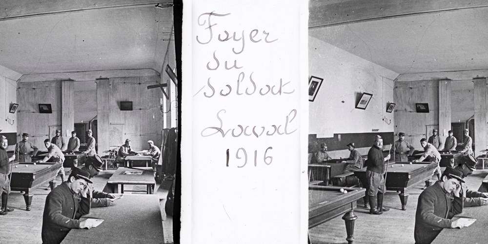 Image Id: 4385 Contributor: The Jordan/Ference Collection Theatre: Western Front Subject: Behind the Lines Location: Mayenne - Laval Regiment: Unknown Service Arm: Unknown Battle: Unknown Date: 1916 Combatants: French Publisher: Amateur Stereographers (Collections) Source: French Directory: 1916 Laval Foyer du Soldat