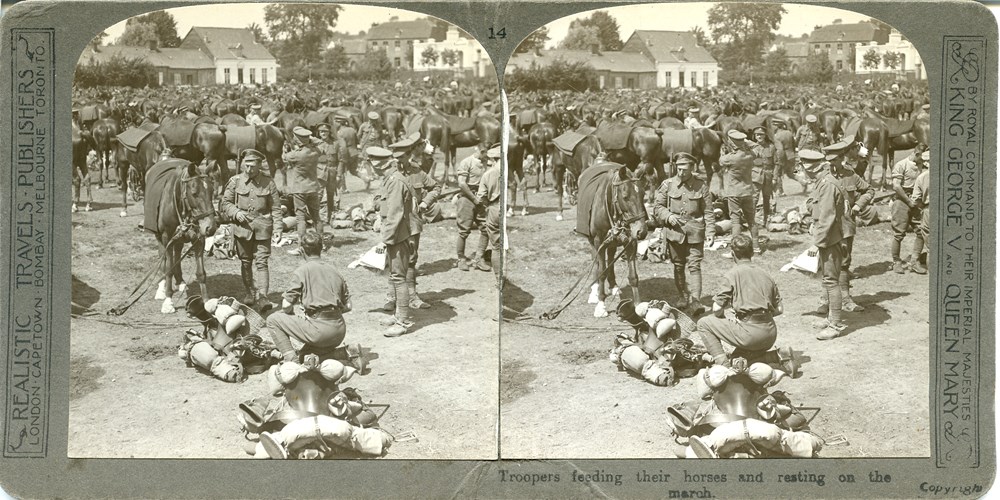 Image Id: 4418 Contributor: The Jordan/Ference Collection Theatre: Western Front Subject: Behind the Lines Location: French Flanders Regiment: 13th Hussars Service Arm: Cavalry Battle: Unknown Date: 1-August-1915 Combatants: British Publisher: Realistic Travels Source: British Directory: Phase 1 601-700 WFA