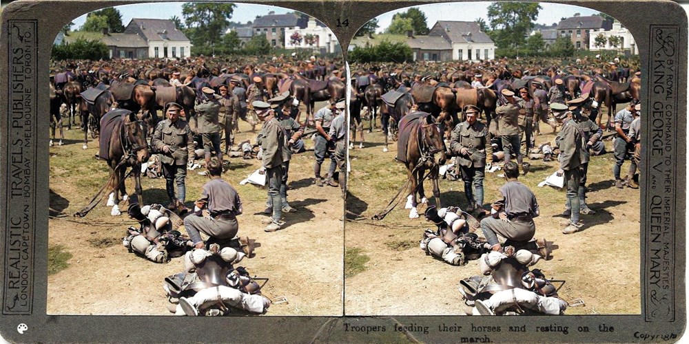 Image Id: 4418 Contributor: The Jordan/Ference Collection Theatre: Western Front Subject: Behind the Lines Location: French Flanders Regiment: 13th Hussars Service Arm: Cavalry Battle: Unknown Date: 1-August-1915 Combatants: British Publisher: Realistic Travels Source: British Directory: Phase 1 601-700 WFA