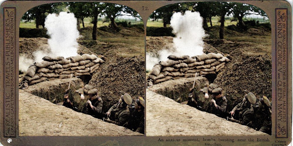 An anxious moment, bombs bursting near the British trenches.