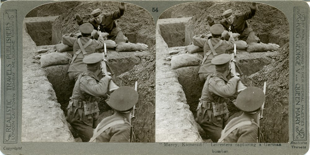 “Mercy Kamerad!”Leicesters capturing a German bomber.