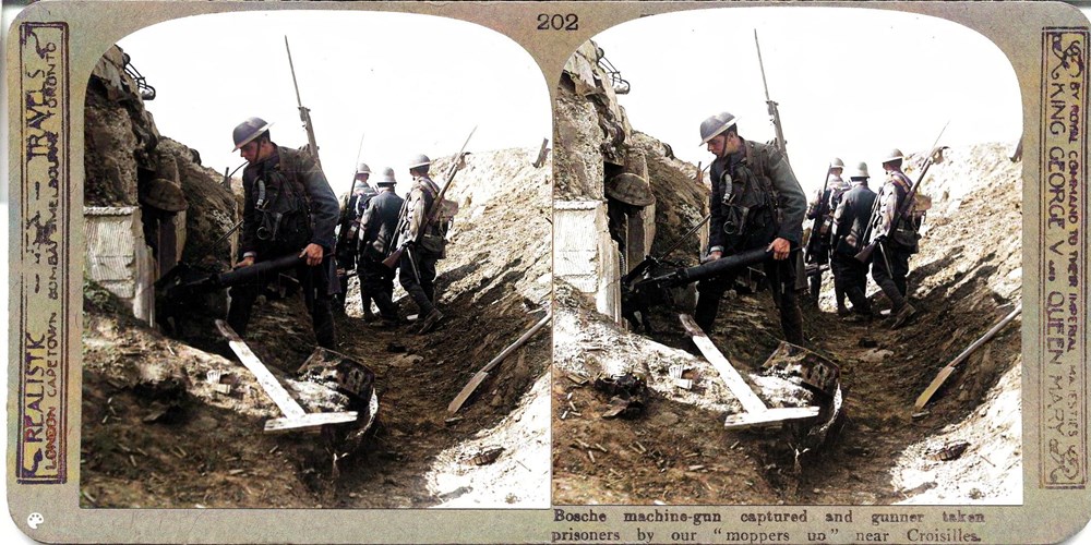 Bosche machine gun captured and gunner taken prisoners by our "moppers up" near Croisilles