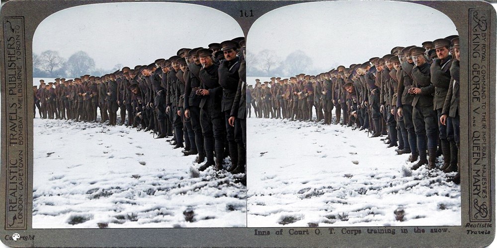 Image Id: 4478 Contributor: The Jordan/Ference Collection Theatre: Home Front Subject: Training Location: London Regiment: Inns of Court Officer Training Service Arm: Infantry Battle: Unknown Date: Unknown Combatants: British Publisher: Realistic Travels Source: British Directory: Phase 1 601-700 WFA