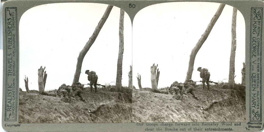 Our troops charge forward into Bernafay Wood and clear the Bosche out of their entrenchments
