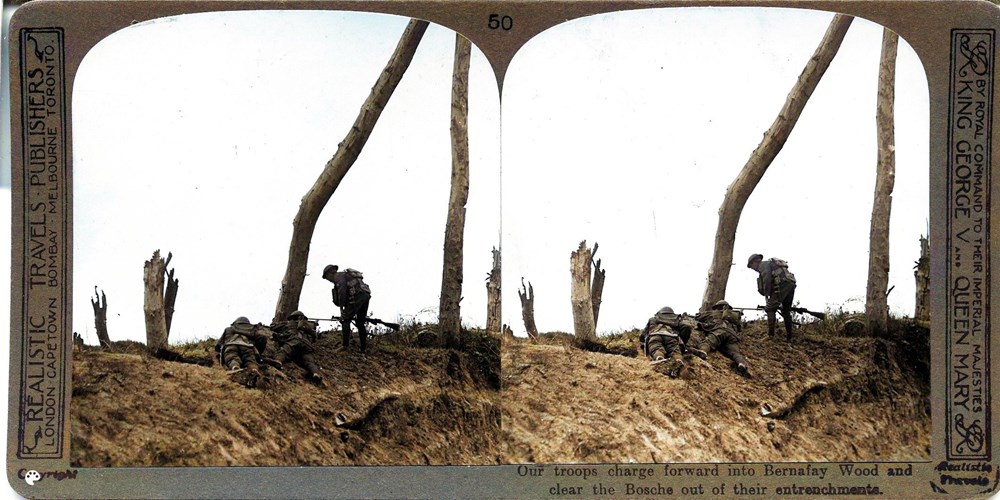 Our troops charge forward into Bernafay Wood and clear the Bosche out of their entrenchments