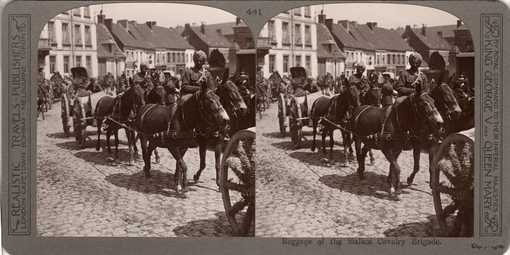 Image Id: 4505 Contributor: The Jordan/Ference Collection Theatre: Western Front Subject: Behind the Lines Location: French Flanders Regiment: Unknown Service Arm: Cavalry Battle: Unknown Date: 1-August-1915 Combatants: Indian Publisher: Realistic Travels Source: British Directory: Phase 1 601-700 WFA