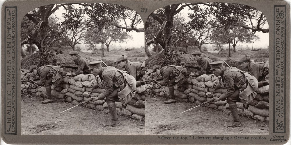 Part of the second staged battle sequence, filmed for "With the Empires Fighters"Image Id: 4525 Contributor: The Jordan/Ference Collection Theatre: Western Front Subject: Training Location: French Flanders Regiment: Leicester Service Arm: Infantry Battle: Unknown Date: September 1915 Combatants: British Publisher: Realistic Travels Source: British Directory: Phase 1 601-700 WFA