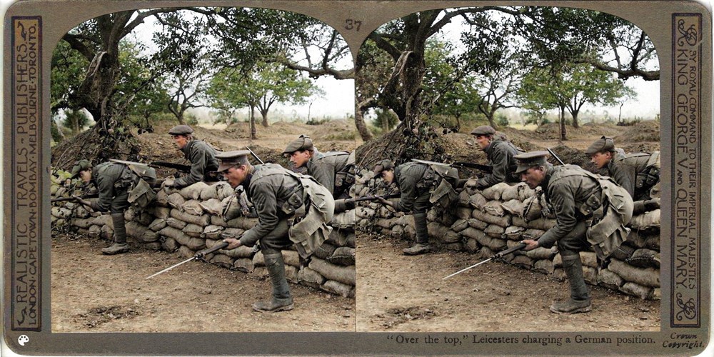 Part of the second staged battle sequence, filmed for "With the Empires Fighters"Image Id: 4525 Contributor: The Jordan/Ference Collection Theatre: Western Front Subject: Training Location: French Flanders Regiment: Leicester Service Arm: Infantry Battle: Unknown Date: September 1915 Combatants: British Publisher: Realistic Travels Source: British Directory: Phase 1 601-700 WFA