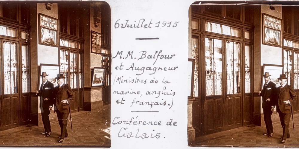 M.M.Balfour et Augagneur (ministres de la marine, anglais et français) conférence de Calais - Messrs Balfour and Augagneur, British and French naval ministers at the Calais Conference