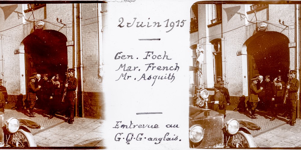 Général Foch, Field Marshal French, Mr Asquith, entrevue au G.W.G. anglais - discussions at British H.Q.
