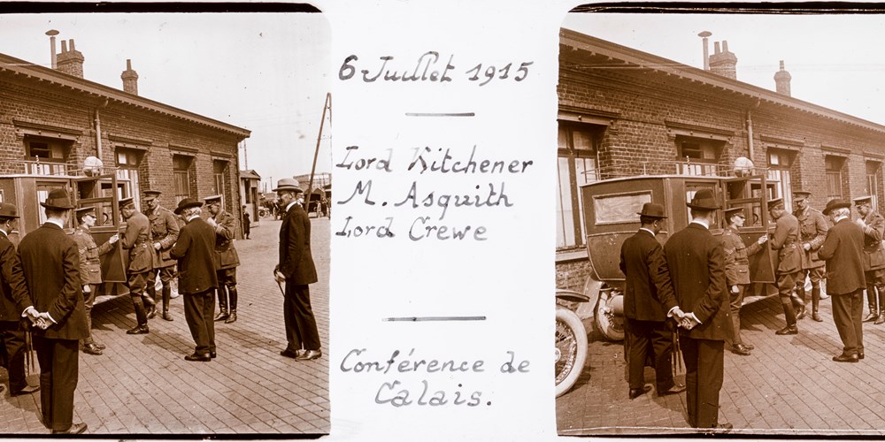 Image Id: 4594 Contributor: The Jordan/Ference Collection Theatre: Western Front Subject: Politicians & Dignitaries Location: Pas de Calais - Calais Regiment: Unknown Service Arm: Unknown Battle: Unknown Date: 6 July 1915 Combatants: British Publisher: Gueidan Source: French Directory: Gueidan full set