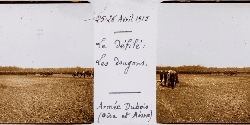 Image Id: 4647 Contributor: The Jordan/Ference Collection Theatre: Western Front Subject: Parades Location: Oise et Aisne Regiment: Unknown Service Arm: Cavalry Battle: Unknown Date: 25-26 April 1915 Combatants: French Publisher: Gueidan Source: French Directory: Gueidan full set