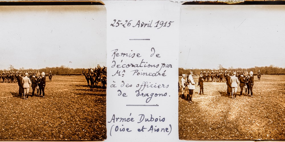 remise de décorations par M.Poincaré a des officiers de dragons, armée Dubois - presentaion of medals by M.Poincaré to dragoon officers, army Dubois