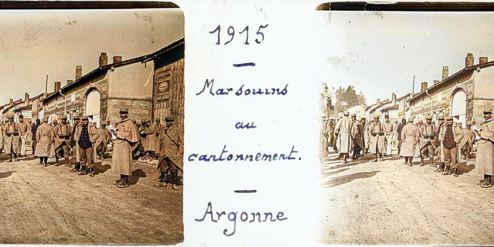 Possibly the Moroccan division - https://en.wikipedia.org/wiki/Moroccan_Division_(France)Image Id: 4658 Contributor: The Jordan/Ference Collection Theatre: Western Front Subject: Behind the Lines Location: Argonne Regiment: Unknown Service Arm: Marines Battle: Unknown Date: 1915 Combatants: French Publisher: Gueidan Source: French Directory: Gueidan full set