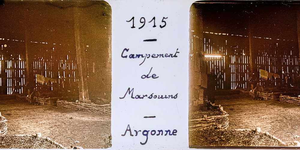 Possibly the Moroccan division - https://en.wikipedia.org/wiki/Moroccan_Division_(France)Image Id: 4659 Contributor: The Jordan/Ference Collection Theatre: Western Front Subject: Behind the Lines Location: Argonne Regiment: Unknown Service Arm: Marines Battle: Unknown Date: 1915 Combatants: French Publisher: Gueidan Source: French Directory: Gueidan full set