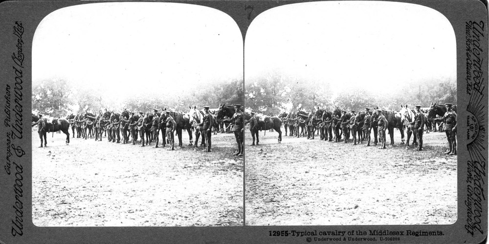 Image Id: 47 Contributor: The Jordan/Ference Collection Theatre: Western Front Subject: Behind the Lines Location: Unknown Regiment: Middlesex Service Arm: Cavalry Battle: Unknown Date: Unknown Combatants: British Publisher: Underwood & Underwood Source: British Directory: WOTNA