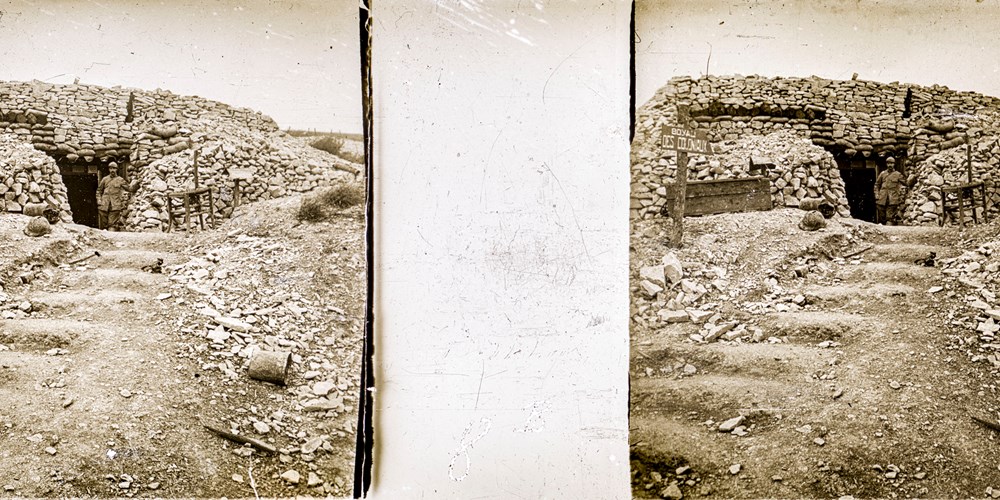 Ravin du Bois des Trois Cornes, gourbi au 102 - ravine of the Bois des Trois Cornes, HQ (literally 'shack') of number 102 battery