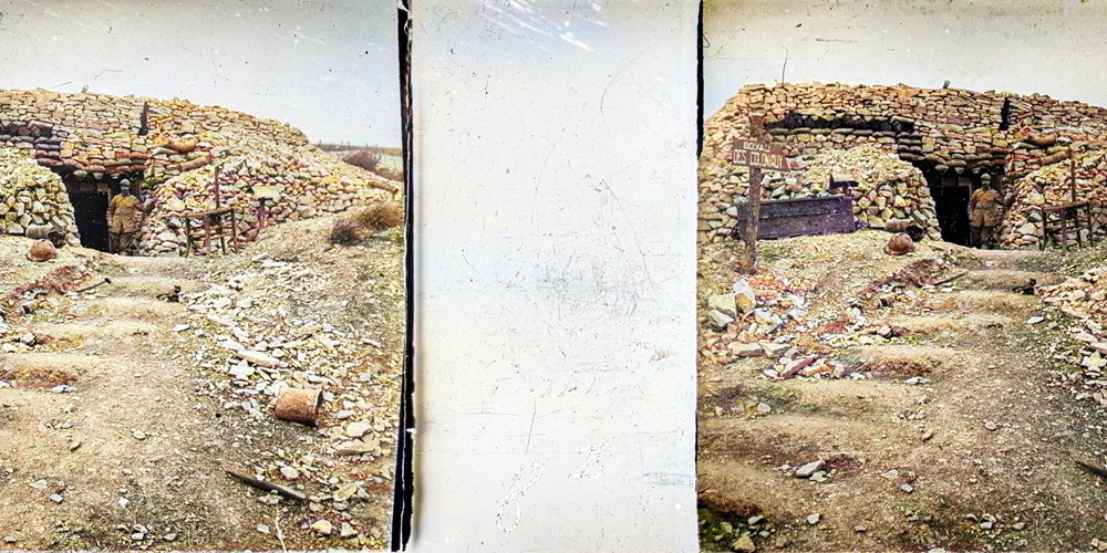 Ravin du Bois des Trois Cornes, gourbi au 102 - ravine of the Bois des Trois Cornes, HQ (literally 'shack') of number 102 battery