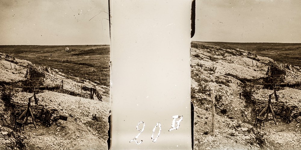 Ravin de Bois Enhache, au-dessus mitrailleuse devant pièce - Ravin de Bois Enhache from above, machine gun in foreground