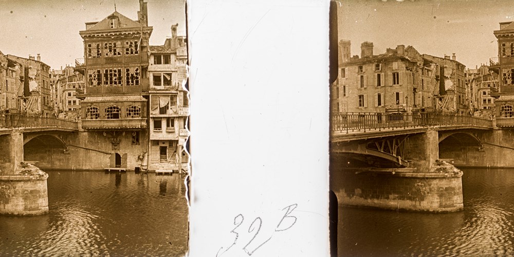 Rue Beaurepaire, Pont Fernand Legay.Image Id: 4773 Contributor: The Jordan/Ference Collection Theatre: Western Front Subject: Battle Aftermath Location: Verdun Regiment: Unknown Service Arm: Unknown Battle: Verdun Date: Unknown Combatants: Unknown Publisher: The Honorat Collection Source: French Directory: Honorat