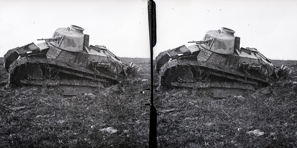 North of the village Haumont-près-Samogneux, one of the "vilages détruits".Image Id: 4824 Contributor: The Jordan/Ference Collection Theatre: Western Front Subject: Tank Scenes Location: Verdun Regiment: Unknown Service Arm: Unknown Battle: Verdun Date: 12 November 1918 Combatants: Unknown Publisher: The Honorat Collection Source: French Directory: Honorat