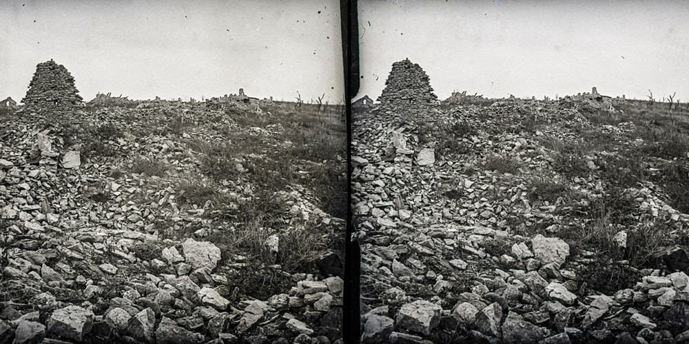 Haumont-près-Samogneux is one of the "villages détruit", villages that were destroyed and not rebuilt after the war.Image Id: 4837 Contributor: The Jordan/Ference Collection Theatre: Western Front Subject: Battle Aftermath Location: Verdun, Haumont Regiment: Unknown Service Arm: Unknown Battle: Verdun Date: 14 November 1918 Combatants: Unknown Publisher: The Honorat Collection Source: French Directory: Honorat