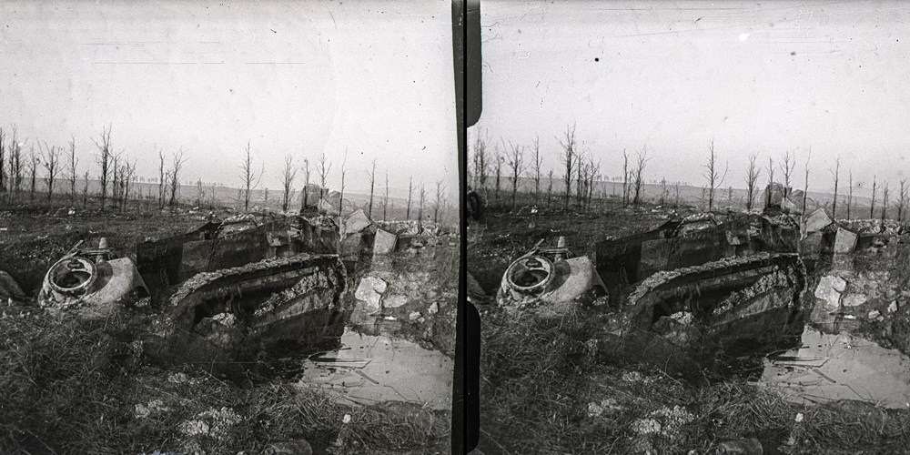 Bois d'Haumont, tank enlisé pendant l'attaque du bois - Bois d'Haumont, tank bogged down during the attack on the wood