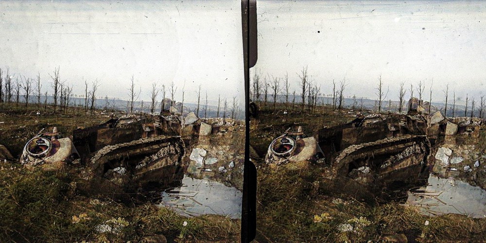 Bois d'Haumont, tank enlisé pendant l'attaque du bois - Bois d'Haumont, tank bogged down during the attack on the wood
