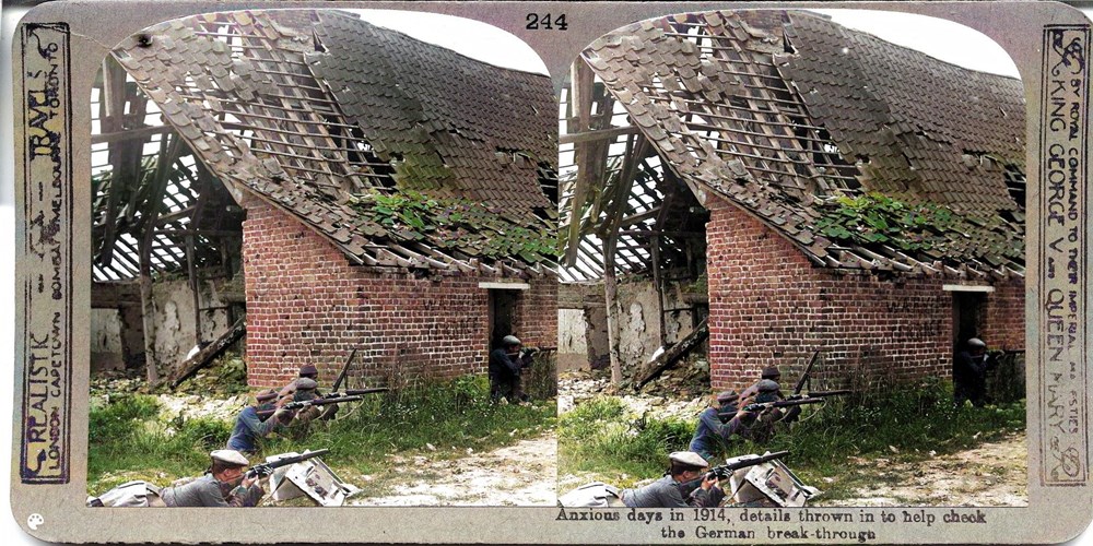 Image Id: 486 Contributor: The Jordan/Ference Collection Theatre: Western Front Subject: The Front Line Location: Unknown Regiment: Unknown Service Arm: Infantry Battle: Unknown Date: 1914 Combatants: British Publisher: Realistic Travels Source: British Directory: Set of 600 201-300