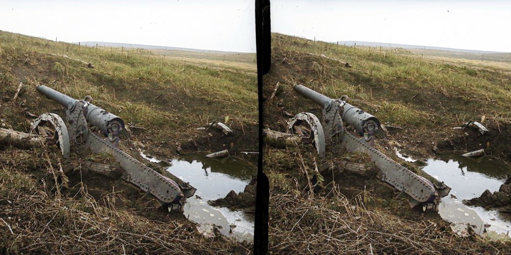 Bezonvaux, pièce 155 enlisé au Fond des Rousses - Bezonvaux, a 155mm artillery piece bogged down at Fond des Rousses