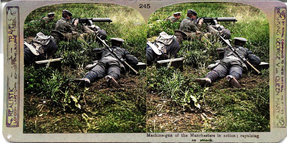 Image Id: 487 Contributor: The Jordan/Ference Collection Theatre: Western Front Subject: The Front Line Location: Unknown Regiment: Manchester Regiment Service Arm: Infantry Battle: Unknown Date: 1914-1915 Combatants: British Publisher: Realistic Travels Source: British Directory: Set of 600 201-300