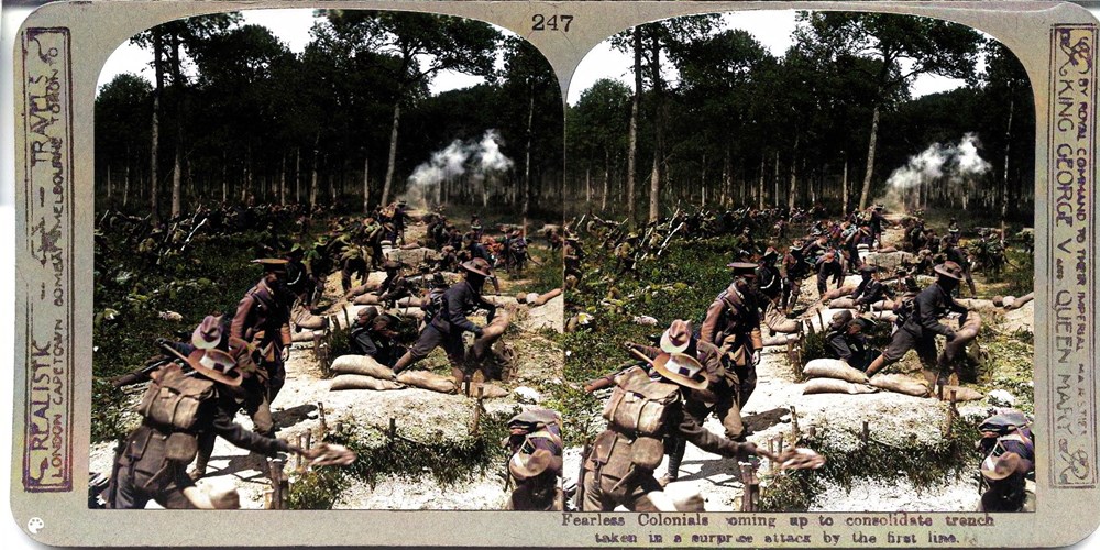 Fearless Colonials coming up to consolidate trench taken in a surprise attack by the first line