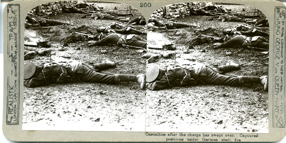 Casualties after the charge has swept over captured positions under German shell-fire