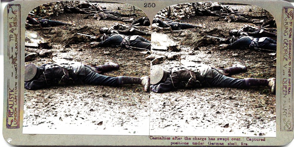 Casualties after the charge has swept over captured positions under German shell-fire