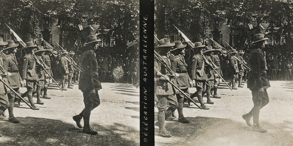 Image Id: 4979 Contributor: Scan by Ian Watson; physical artifact located in the Jordan/Ference Collection Theatre: Western Front Subject: Parades Location: Unknown Regiment: Unknown Service Arm: Unknown Battle: Unknown Date: Unknown Combatants: Australian Publisher: Éditions STL Paper Cards Source: French Directory: Editions STL