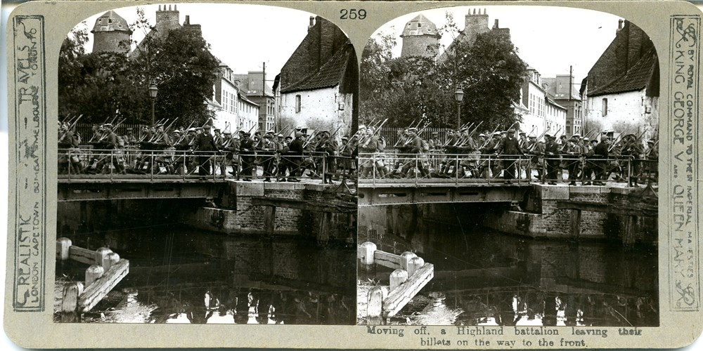 Moving off, a Highland battalion leaving their billets on the way to the front