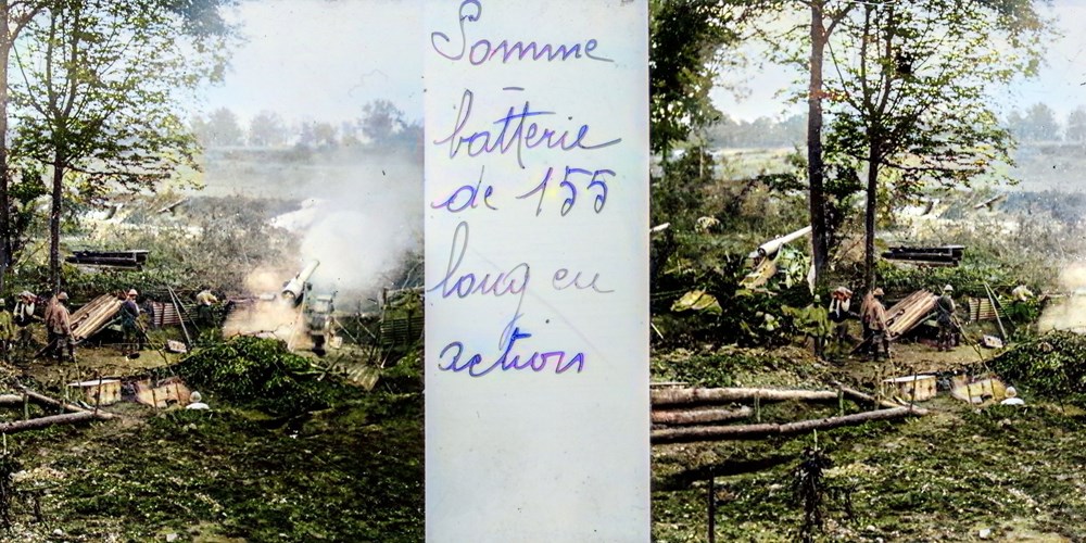 Batterie de 155 long en action - battery of 155mm long range guns in action