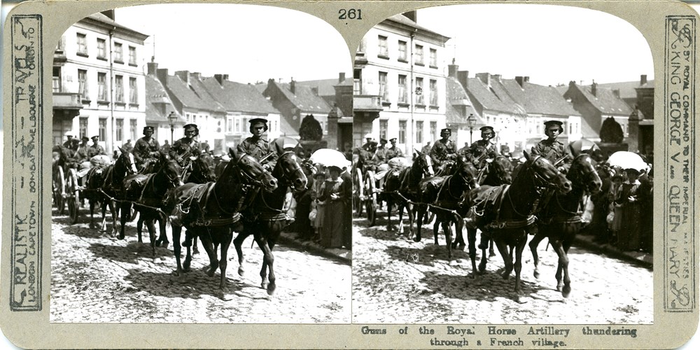 Guns of the Royal Horse Artillery thundering through a French village
