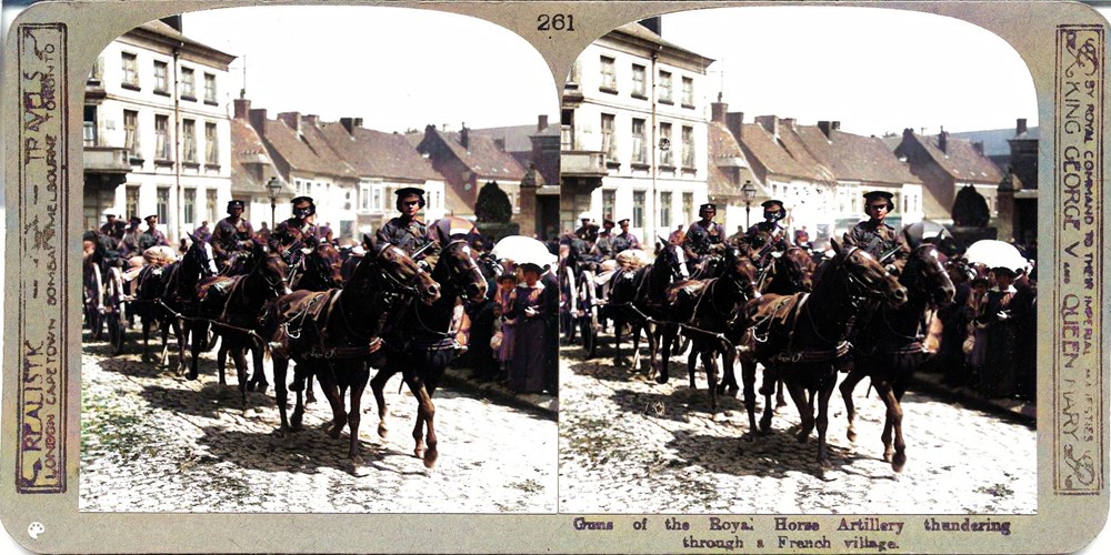 Guns of the Royal Horse Artillery thundering through a French village