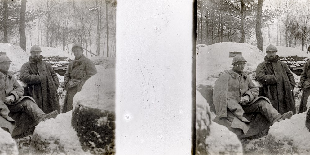 Three poilu relaxing in the trench on a cold winter's day