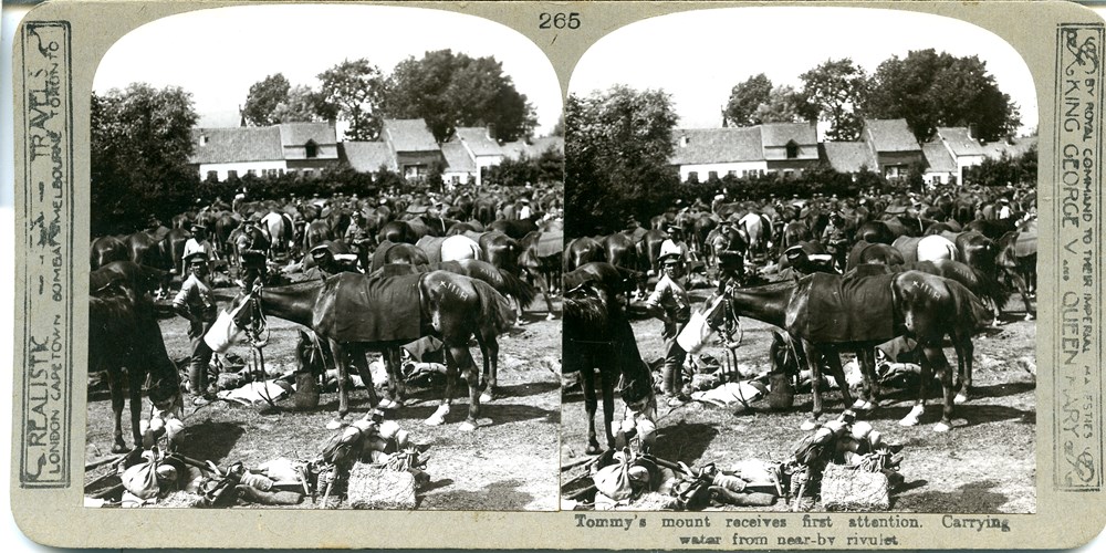 Tommy's mount receives first attention. Carrying water from near-by rivulet