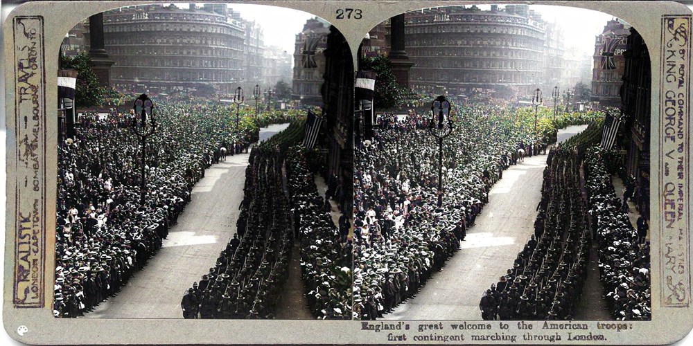 England's great welcome to the American troops, first contingent marching through London