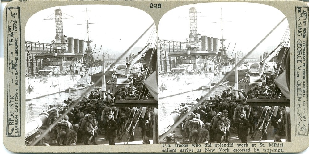 U.S. troops who did splendid work at St. Mihiel salient arrive at New York escorted by warships