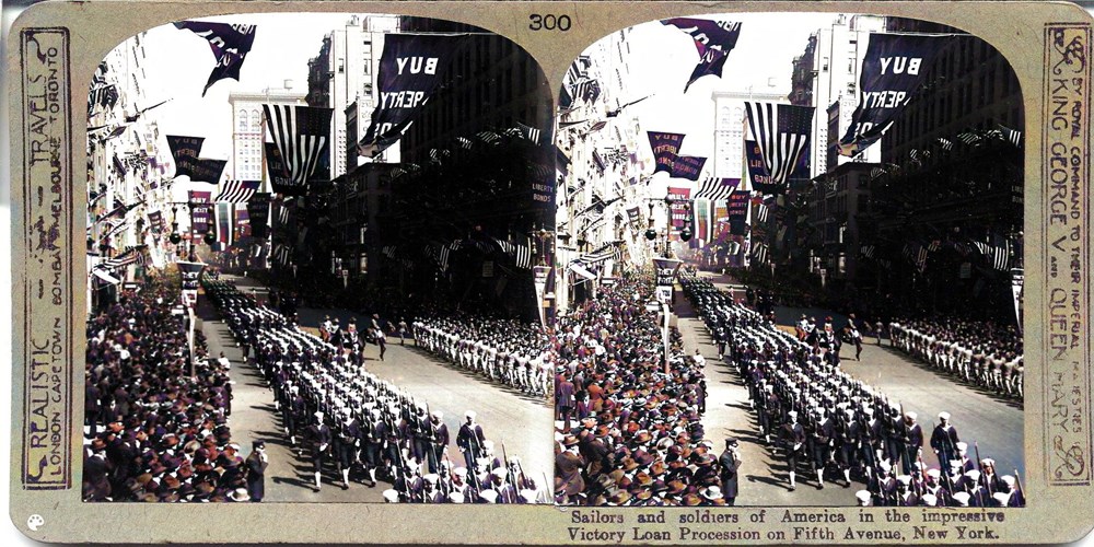 Image Id: 541 Contributor: The Jordan/Ference Collection Theatre: Post-War Subject: Parades Location: 5th Avenue, New York, USA Regiment: Unknown Service Arm: Unknown Battle: Unknown Date: 1918-1919 Combatants: American Publisher: Realistic Travels Source: British Directory: Set of 600 201-300